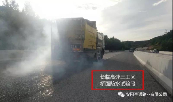 此次橋面防水試驗(yàn)段獲得了項(xiàng)目、監(jiān)理和指揮部的一致認(rèn)可,為我公司在長(zhǎng)臨高速的防水施工奠定了一個(gè)良好的基礎(chǔ),也為亨通路業(yè)2018年的工程又傳來了一份捷報(bào)。