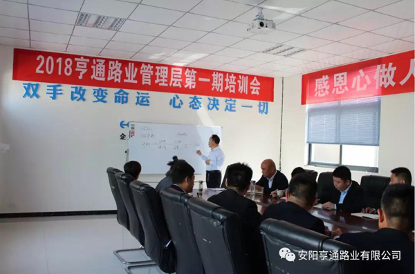 2018年4月18-20日,為加強公司管理隊伍建設,增進中層間的相互交流,培養(yǎng)鍛煉團隊精神和協作意識,亨通路業(yè)全體中層從天南地北各個項目返回公司集中開展了為期三天的以“感恩心做人,責任心做事”為主題的專項培訓活動。